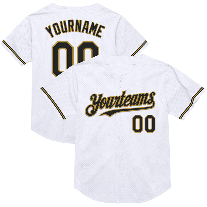 Custom White Black-Old Gold Mesh Authentic Throwback Baseball Jersey