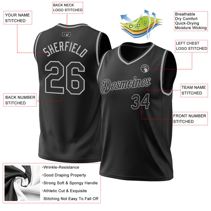 Custom Black Gray Authentic Throwback Basketball Jersey