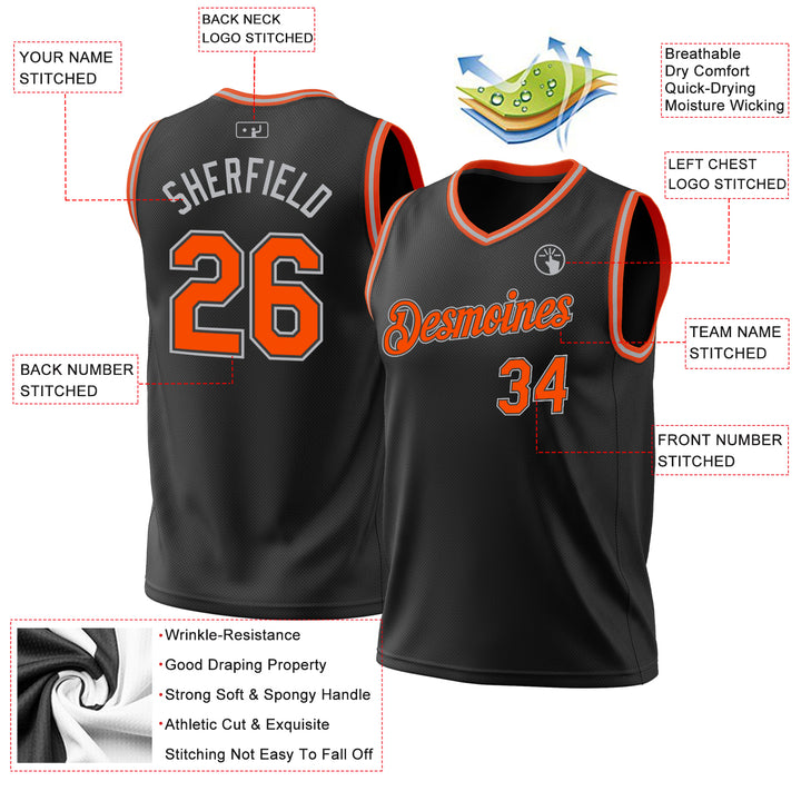 Custom Black Orange-Gray Authentic Throwback Basketball Jersey