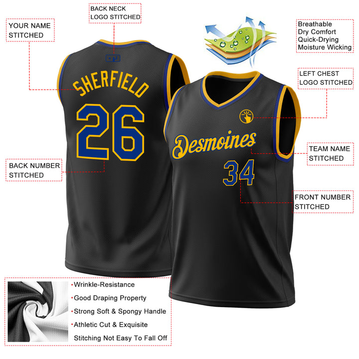 Custom Black Royal-Gold Authentic Throwback Basketball Jersey