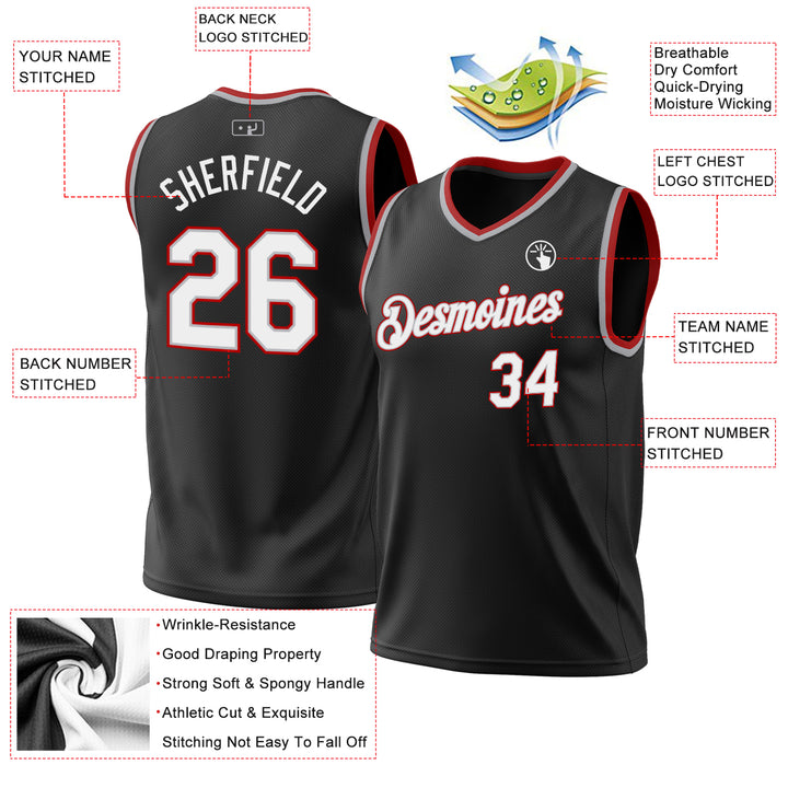 Custom Black Gray-Red Authentic Throwback Basketball Jersey