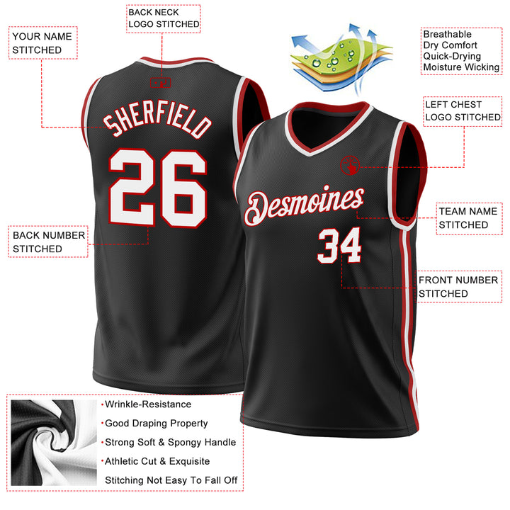 Custom Black White-Red Authentic Throwback Basketball Jersey
