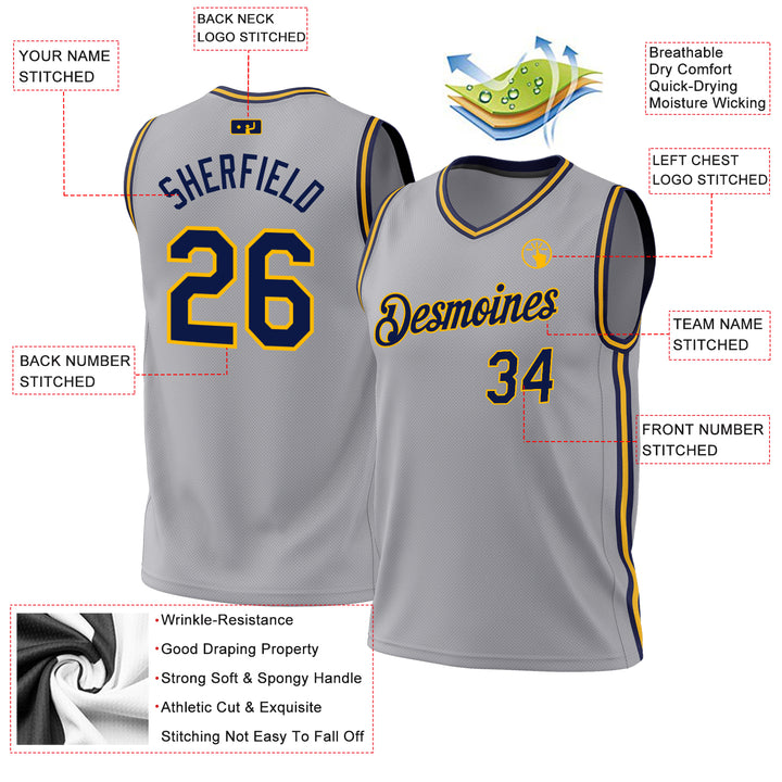 Custom Gray Navy-Gold Authentic Throwback Basketball Jersey