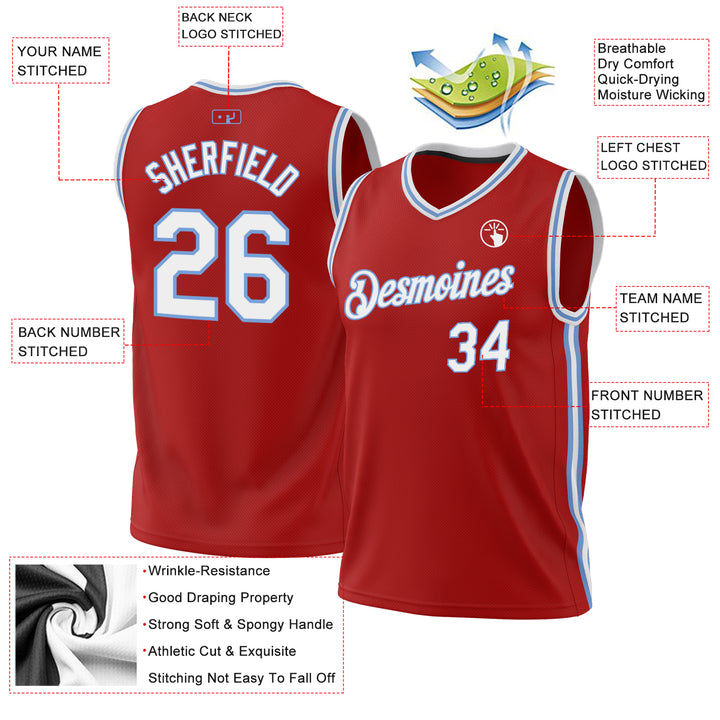 Custom Red White-Light Blue Authentic Throwback Basketball Jersey