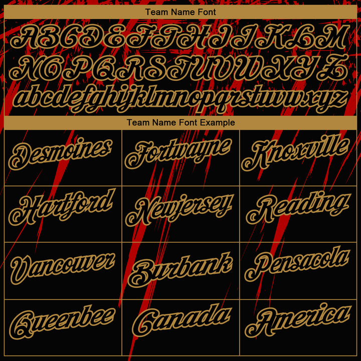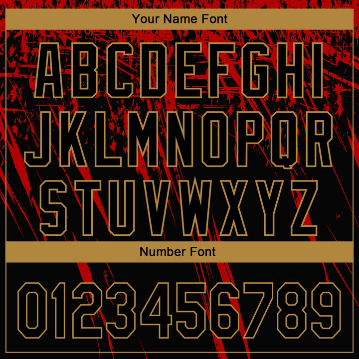 Custom Black Old Gold-Red 3D Pattern Design Sharp Shape Performance Golf Polo Shirt