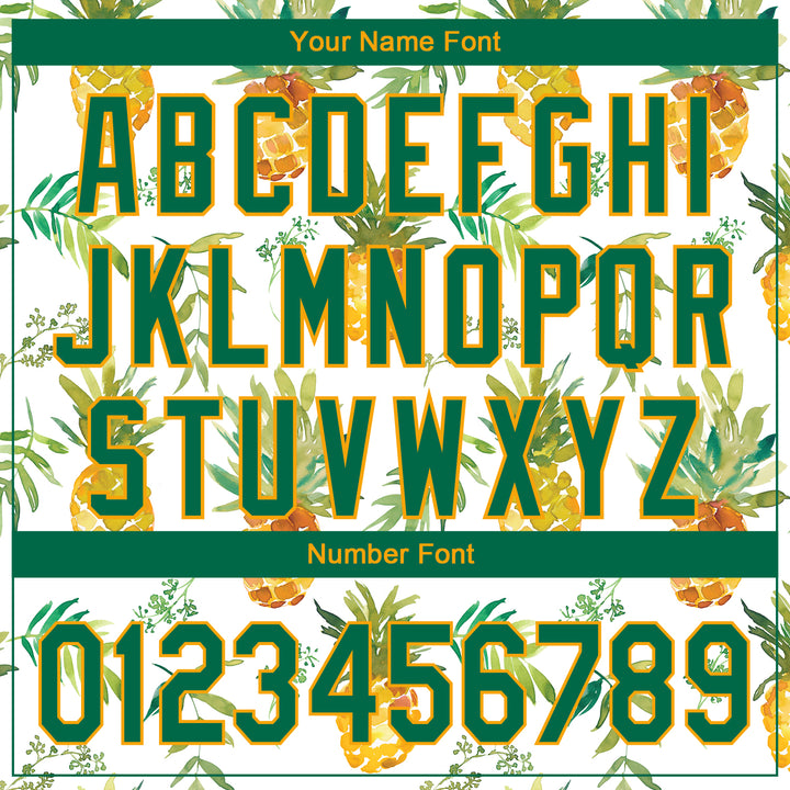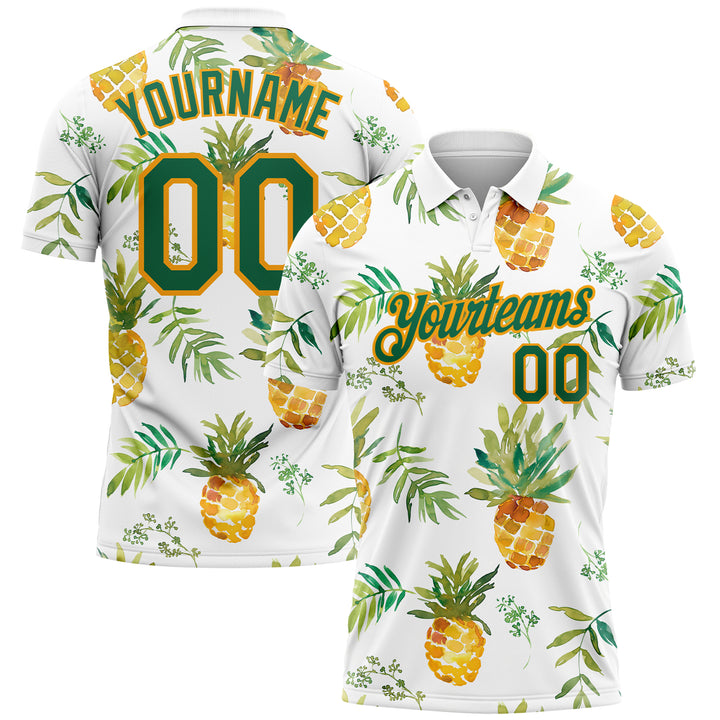 Custom White Kelly Green-Gold 3D Pattern Design Pineapples Performance Golf Polo Shirt