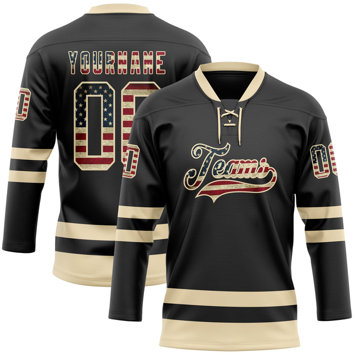 Custom Black Vintage USA Flag-Cream Hockey Lace Neck Jersey