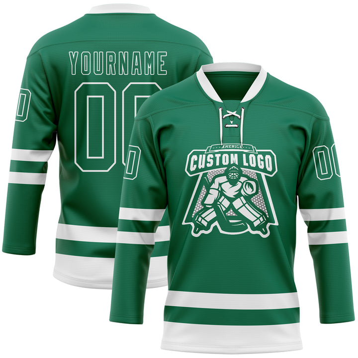 Custom Kelly Green White Hockey Lace Neck Jersey