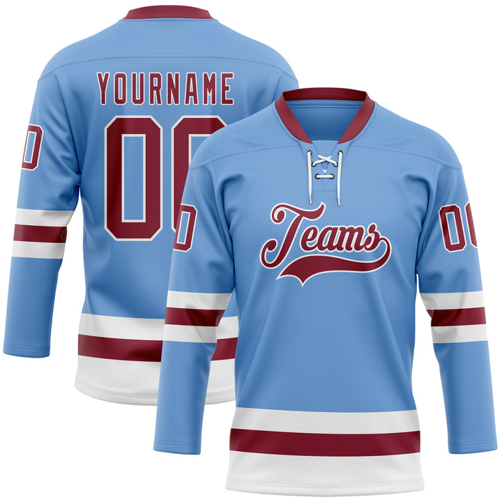 Custom Light Blue Crimson-White Hockey Lace Neck Jersey