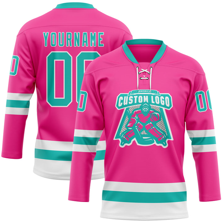 Custom Pink Aqua-White Hockey Lace Neck Jersey