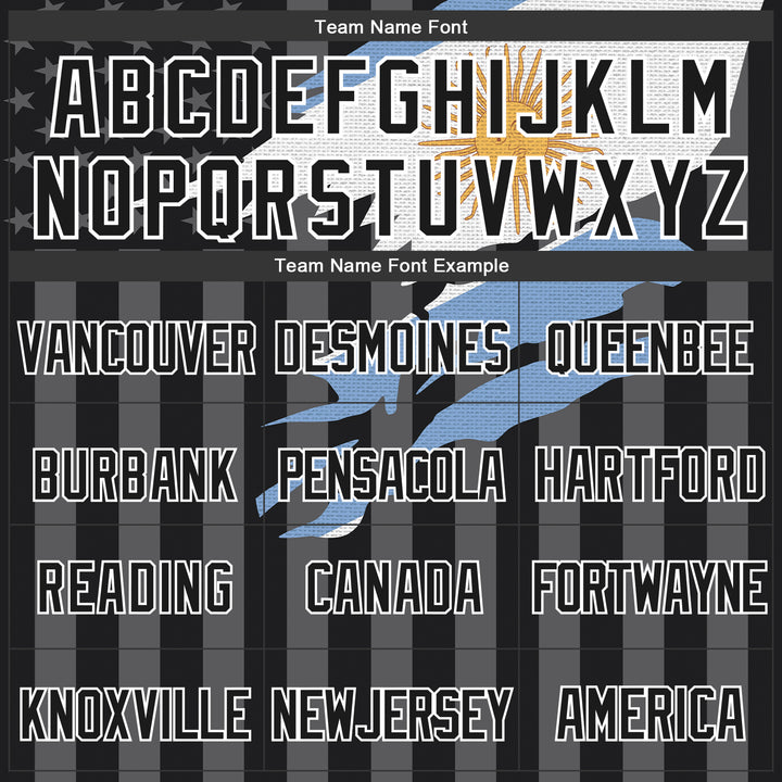Custom Black Gray-White Argentina Argentinian Flag 3D Bomber Full-Snap Varsity Letterman Hoodie Jacket