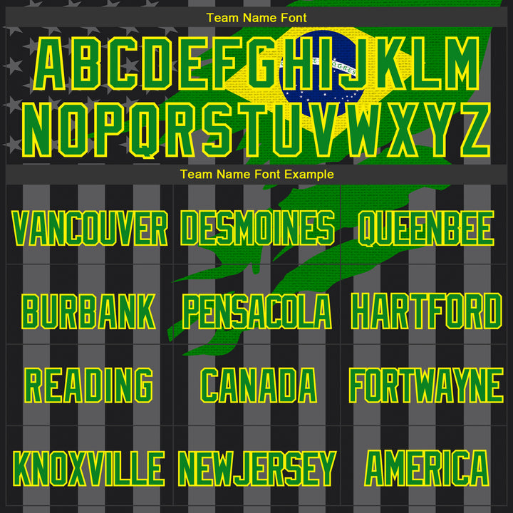 Custom Black Grass Green Light Yellow-Gray Brasil Brazilian Flag 3D Bomber Full-Snap Varsity Letterman Hoodie Jacket