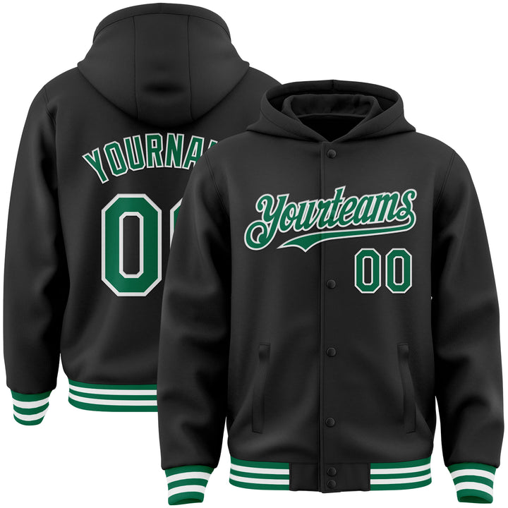 Custom Black Kelly Green-White Bomber Full-Snap Varsity Letterman Hoodie Jacket