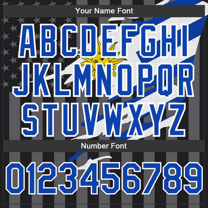 Custom Black Thunder Blue-Gray Uruguay Uruguayan Flag 3D Bomber Full-Snap Varsity Letterman Hoodie Jacket