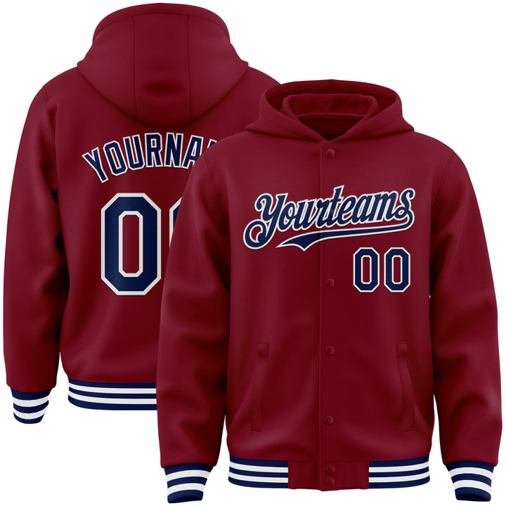 Custom Crimson Navy-White Bomber Full-Snap Varsity Letterman Hoodie Jacket