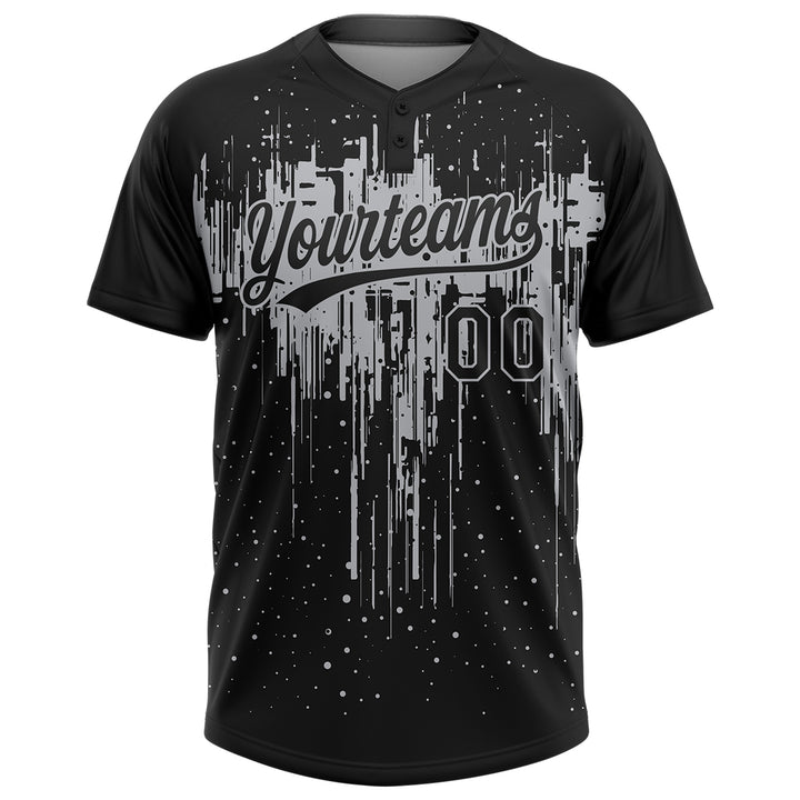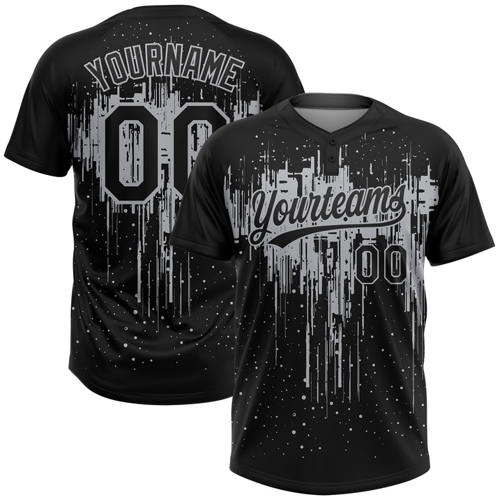 Custom Black Gray 3D Pattern Dripping Splatter Art Two-Button Unisex Softball Jersey