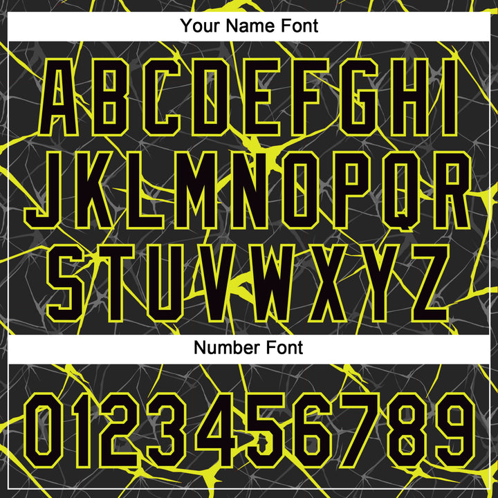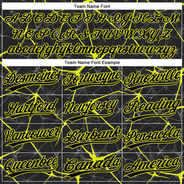 Custom Black Neon Yellow 3D Pattern Abstract Network Two-Button Unisex Softball Jersey