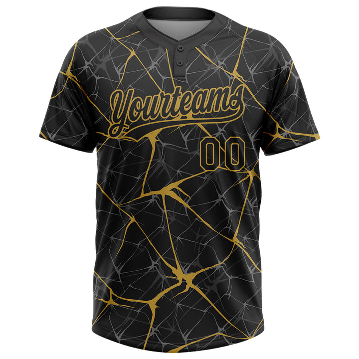 Custom Black Old Gold 3D Pattern Abstract Network Two-Button Unisex Softball Jersey