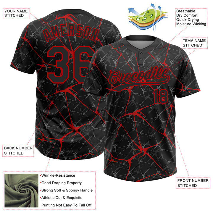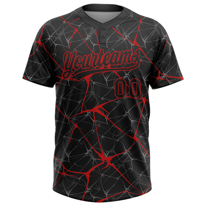 Custom Black Red 3D Pattern Abstract Network Two-Button Unisex Softball Jersey