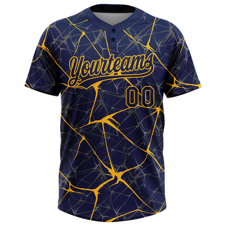 Custom Navy Gold 3D Pattern Abstract Network Two-Button Unisex Softball Jersey