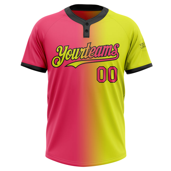 Custom Neon Yellow Neon Pink-Black Gradient Fashion Two-Button Unisex Softball Jersey