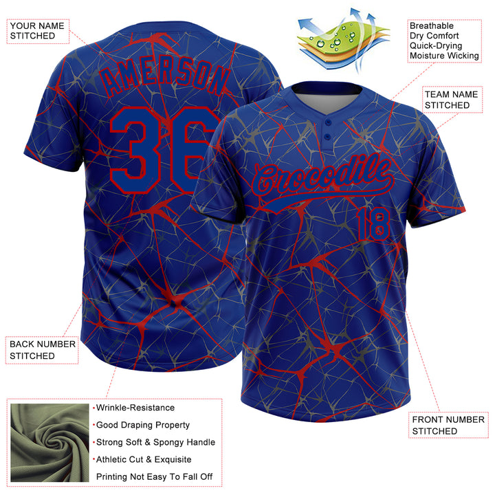 Custom Royal Red 3D Pattern Abstract Network Two-Button Unisex Softball Jersey