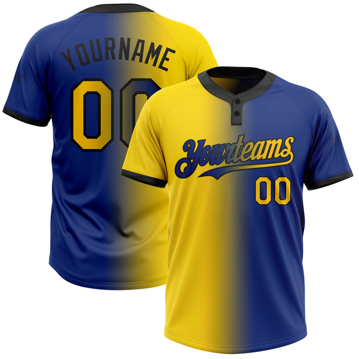 Custom Royal Yellow-Black Gradient Fashion Two-Button Unisex Softball Jersey