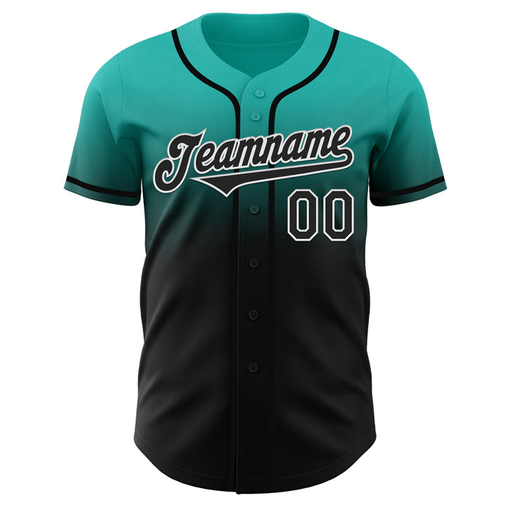 Custom Aqua Black-White Authentic Fade Fashion Baseball Jersey