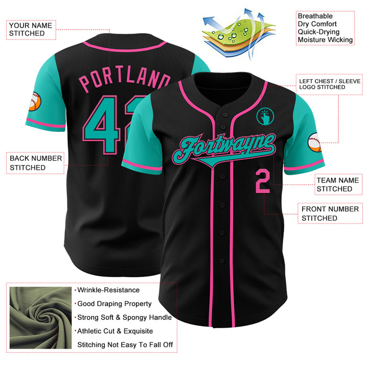 Custom Black Aqua-Pink Authentic Two Tone Baseball Jersey