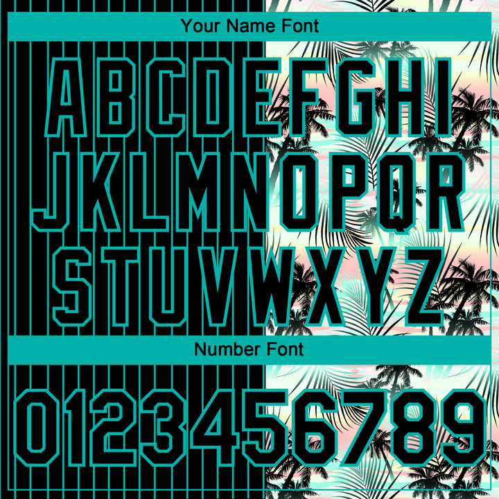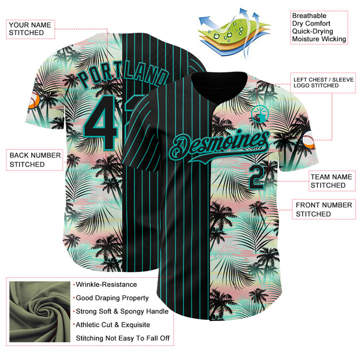 Custom Black Aqua 3D Pattern Design Pinstripe Tropical Palm Leaves Authentic Baseball Jersey