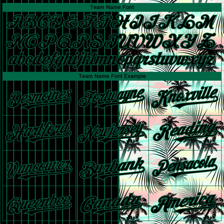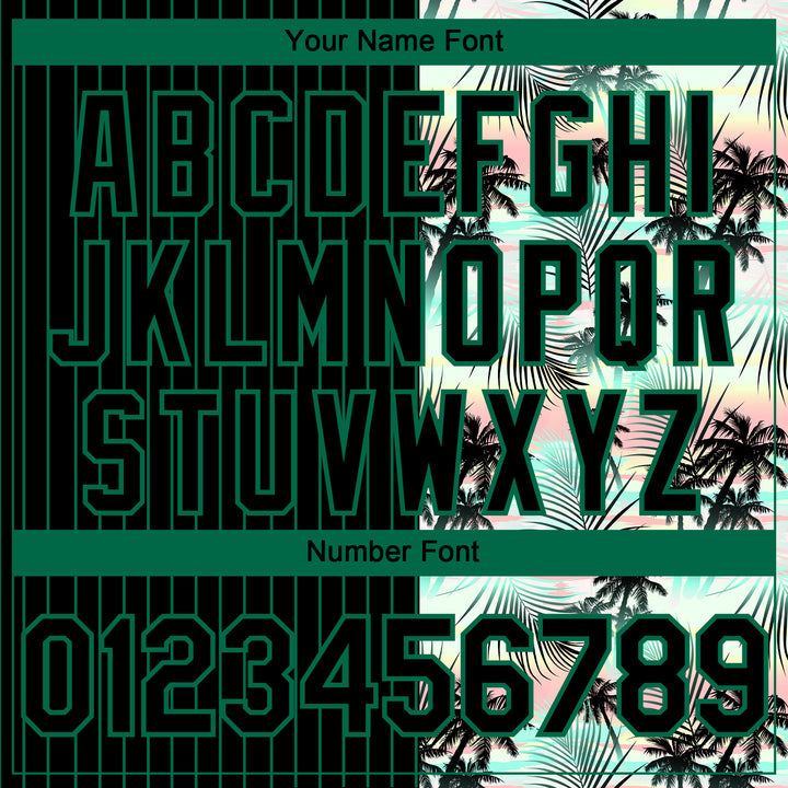Custom Black Kelly Green 3D Pattern Design Pinstripe Tropical Palm Leaves Authentic Baseball Jersey