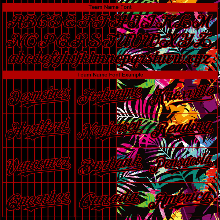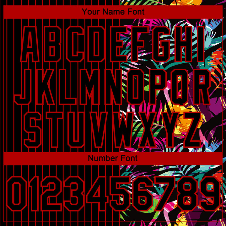 Custom Black Red 3D Pattern Design Pinstripe Tropical Palm Leaves Authentic Baseball Jersey