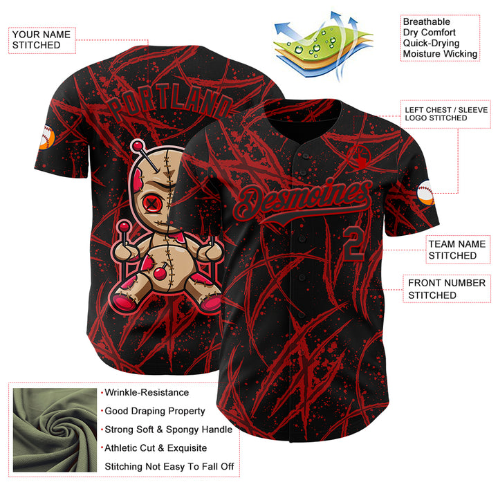 Custom Black Red 3D Halloween Horror Night Trick Treat Party Costume Ideas Authentic Baseball Jersey