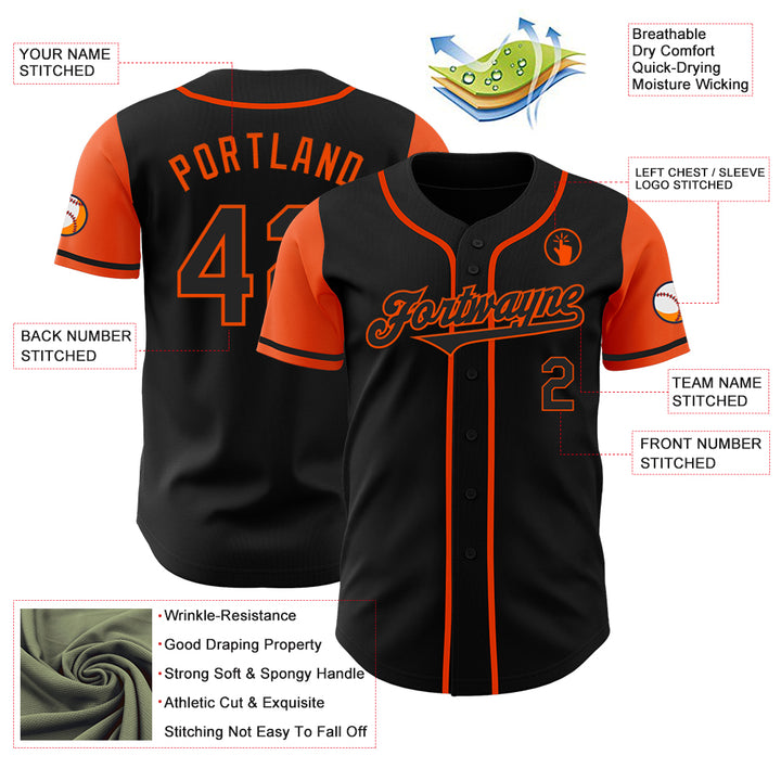 Custom Black Orange Authentic Two Tone Baseball Jersey