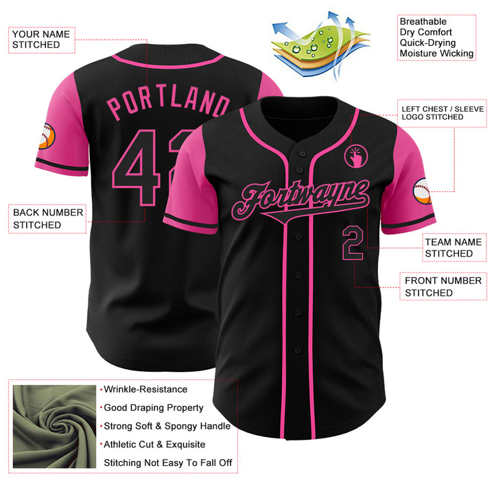 Custom Black Pink Authentic Two Tone Baseball Jersey