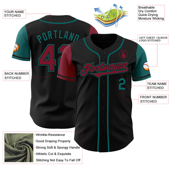 Custom Black Crimson-Teal Authentic Two Tone Baseball Jersey