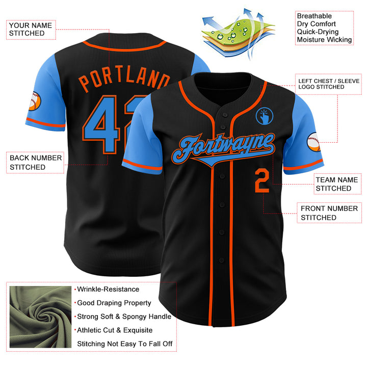 Custom Black Electric Blue-Orange Authentic Two Tone Baseball Jersey
