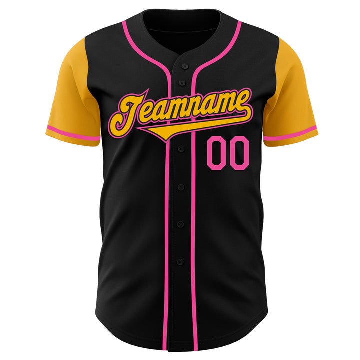 Custom Black Gold-Pink Authentic Two Tone Baseball Jersey