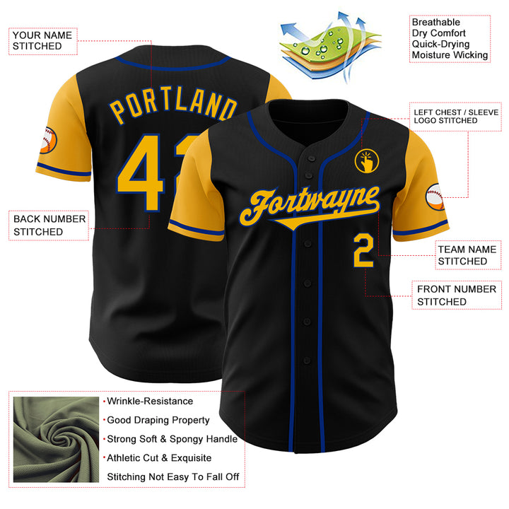Custom Black Gold-Royal Authentic Two Tone Baseball Jersey