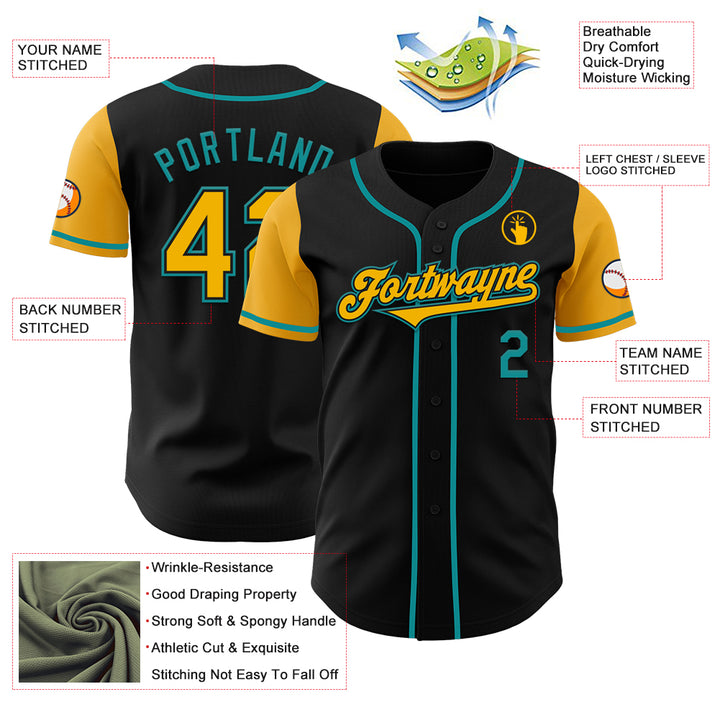 Custom Black Gold-Teal Authentic Two Tone Baseball Jersey
