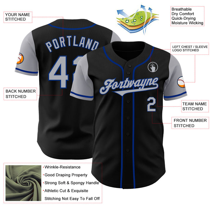 Custom Black Gray-Royal Authentic Two Tone Baseball Jersey