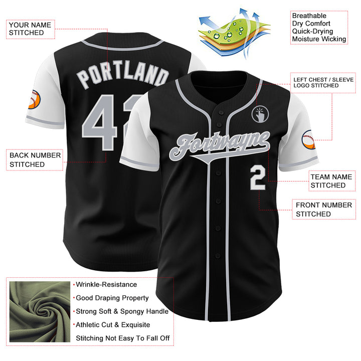 Custom Black Gray-White Authentic Two Tone Baseball Jersey