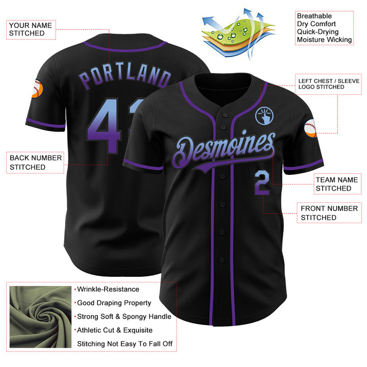 Custom Black Light Blue-Purple Authentic Fade Fashion Baseball Jersey