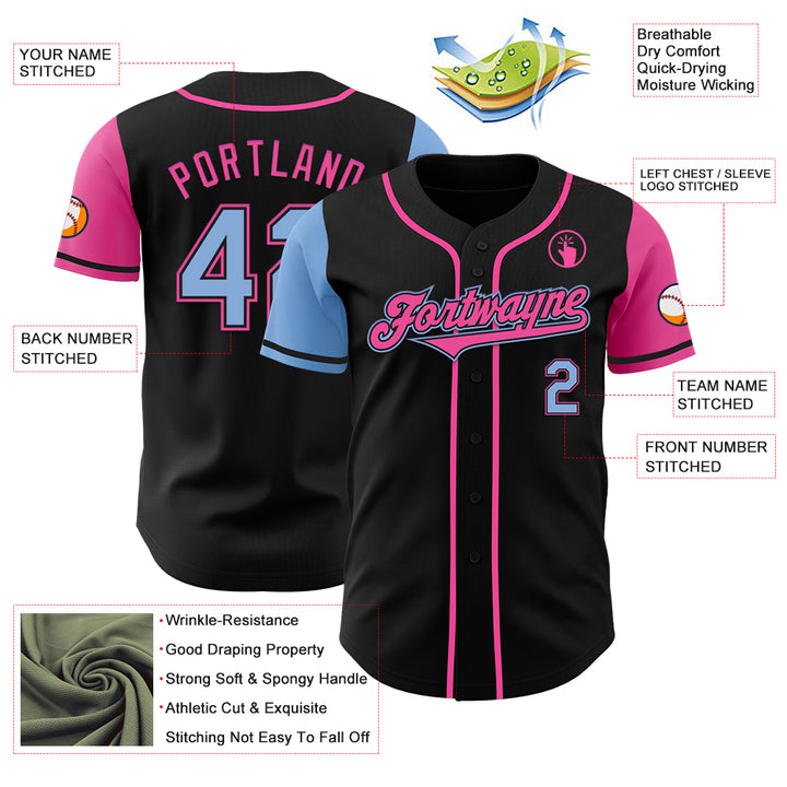 Custom Black Light Blue-Pink Authentic Two Tone Baseball Jersey