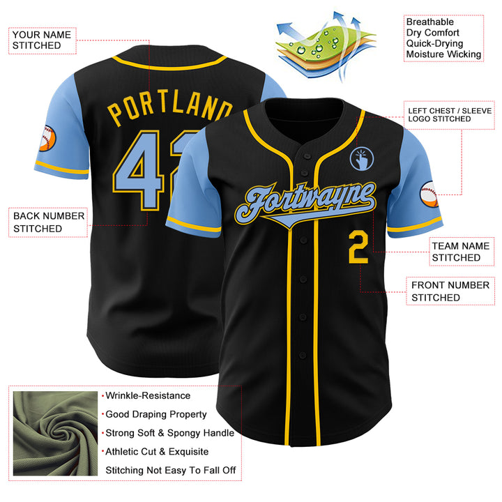 Custom Black Light Blue-Yellow Authentic Two Tone Baseball Jersey
