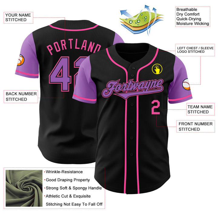 Custom Black Medium Purple-Pink Authentic Two Tone Baseball Jersey