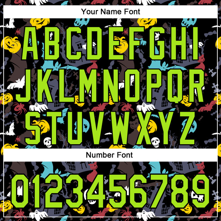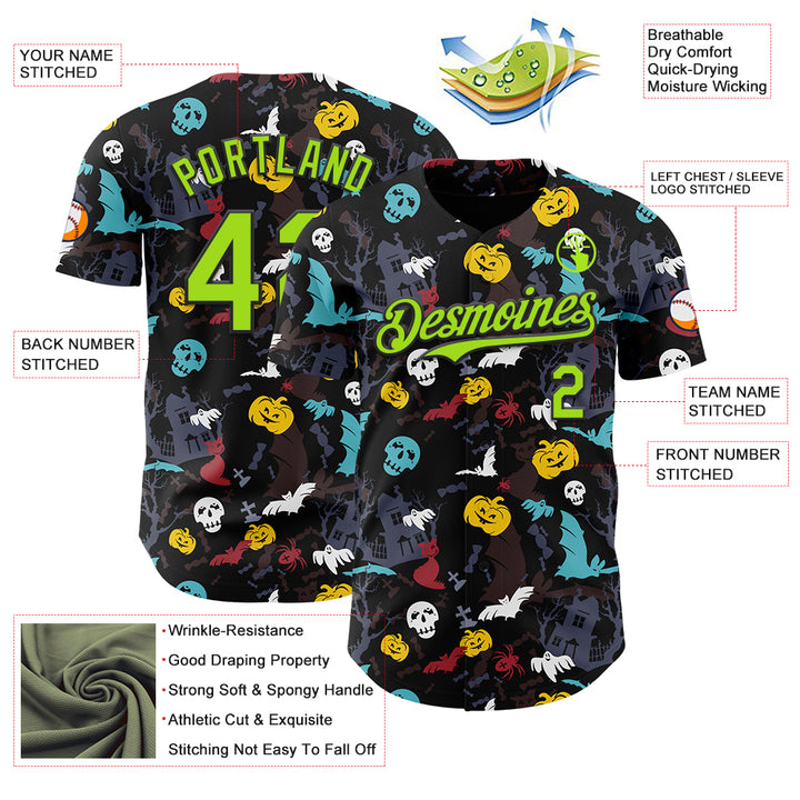 Custom Black Neon Green 3D Halloween Skull Pumpkin Doodle Party Costume Ideas Authentic Baseball Jersey