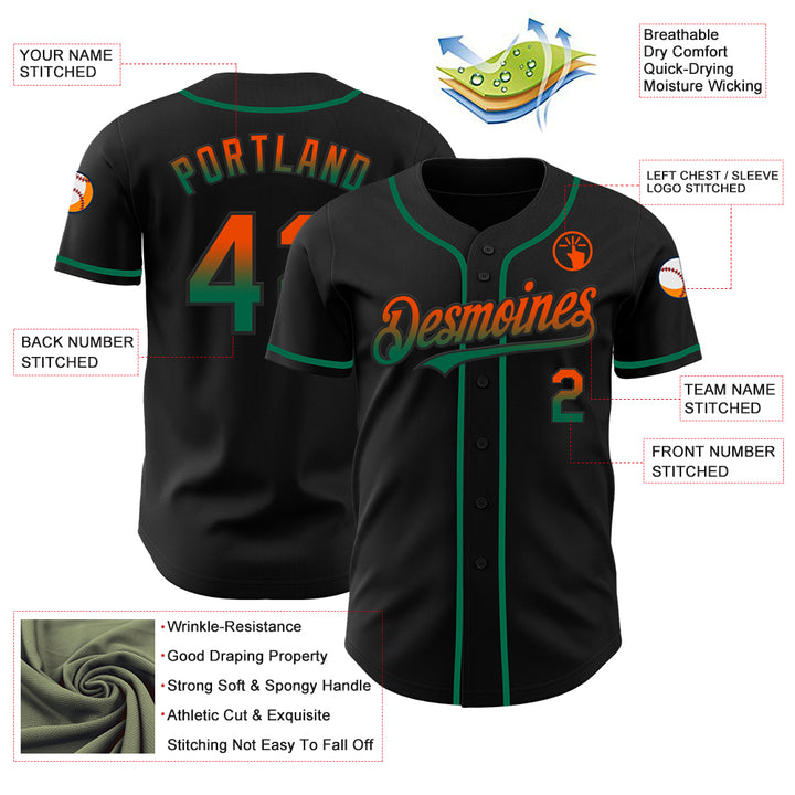 Custom Black Orange-Kelly Green Authentic Fade Fashion Baseball Jersey