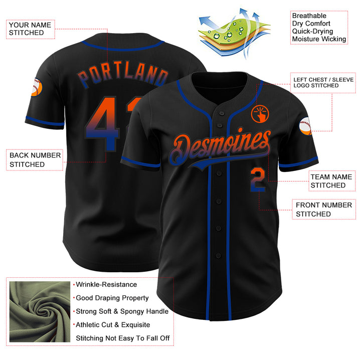 Custom Black Orange-Royal Authentic Fade Fashion Baseball Jersey