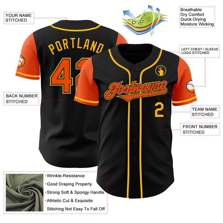 Custom Black Orange-Gold Authentic Two Tone Baseball Jersey